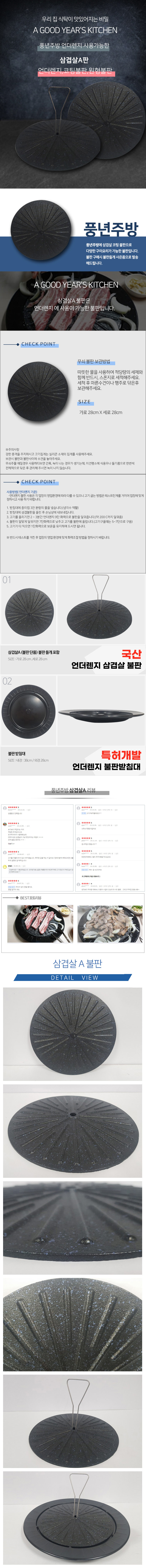 > 삼겹판A (언더렌지 불판,언더렌지용 불판,삼겹살 불판,고기불판,코팅불판,원형불판)